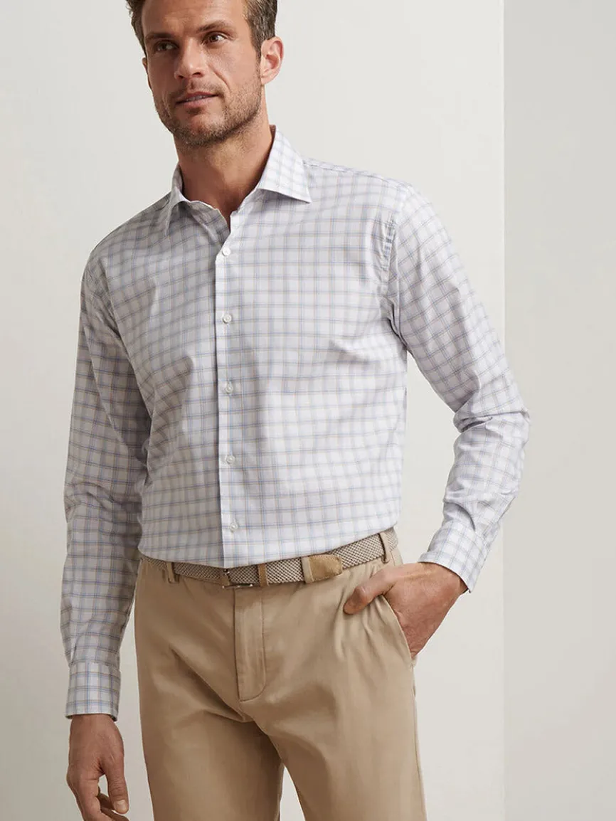 These work-to-weekend favorites offer the classic look and feel of traditional twill shirts in an innovative easy-care fabric that stretches and wicks moisture for all-day comfort. Finished with a spread collar, French placket and double-button barrel cuffs. Classic fit.