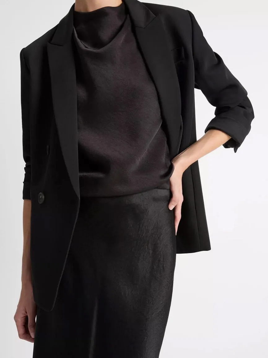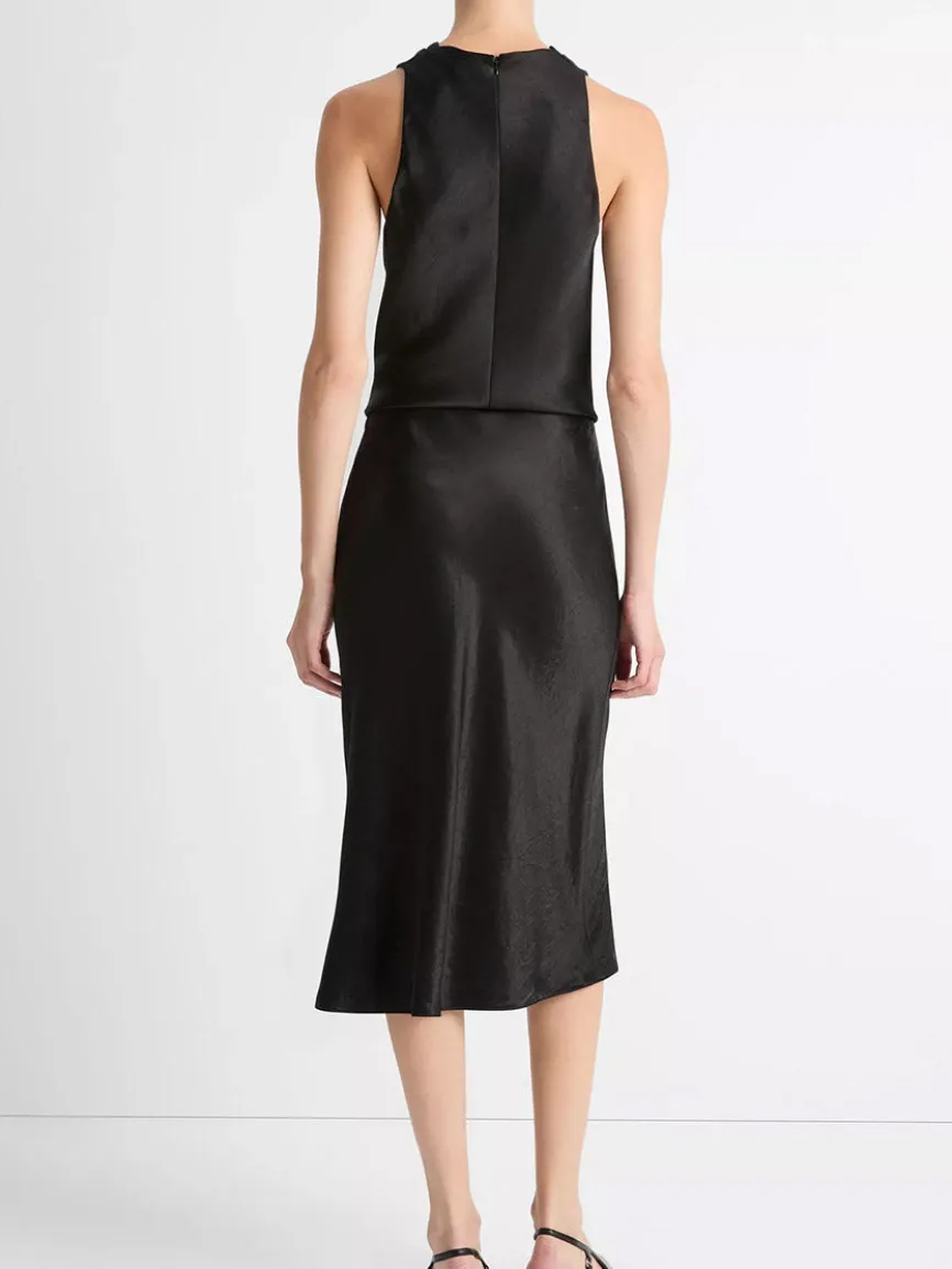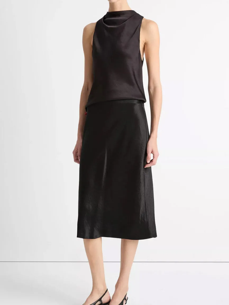A modern slip skirt cut from lustrous Japanese satin. Wear it with the coordinating cami or put a tactile twist on casual, pairing it with a sweatshirt.