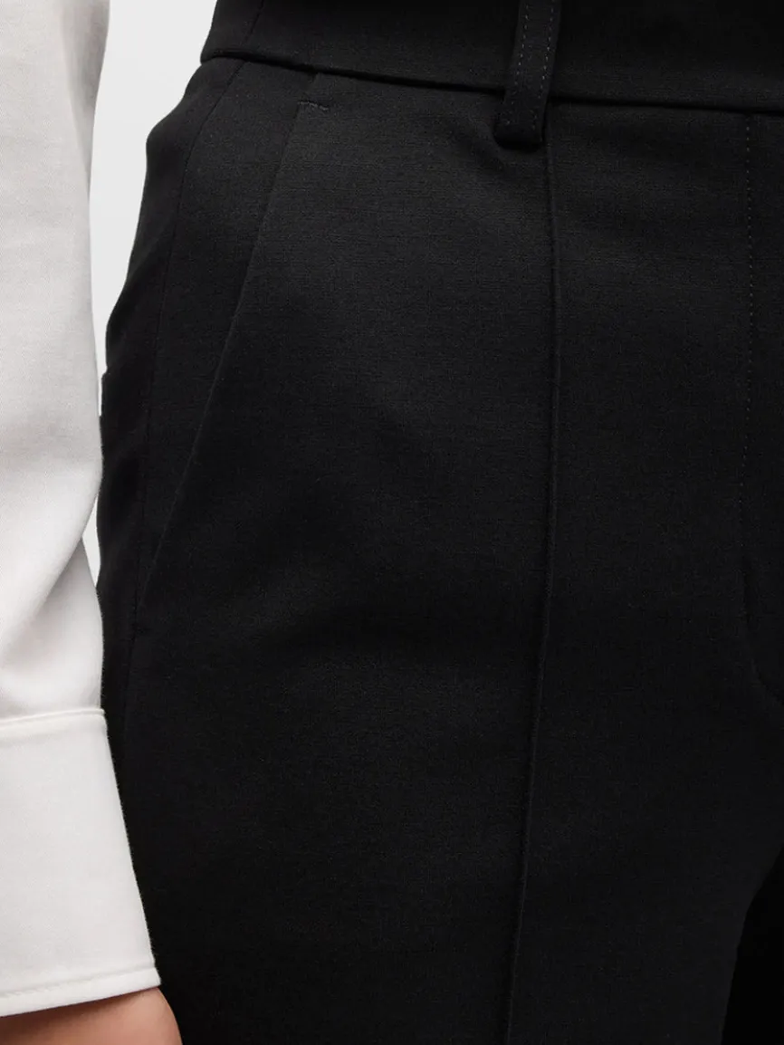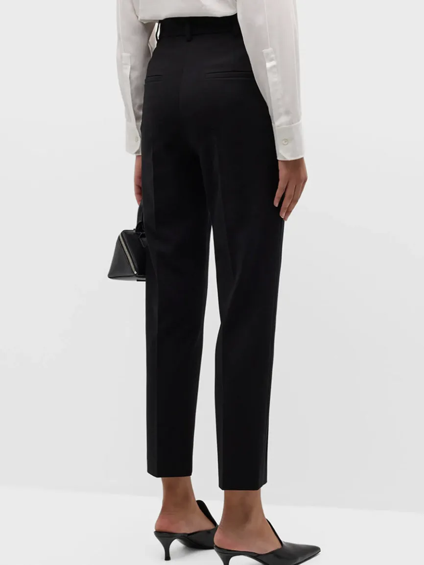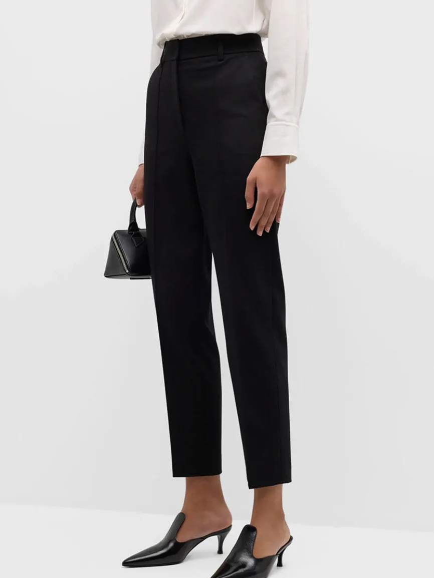 Akris Punto’s Ferry pants in sleek jersey. Mid rise; flat front. Side slash pockets; back welt pockets. Tapered fit; straight legs. Ankle length. Front zip; belt loops.
