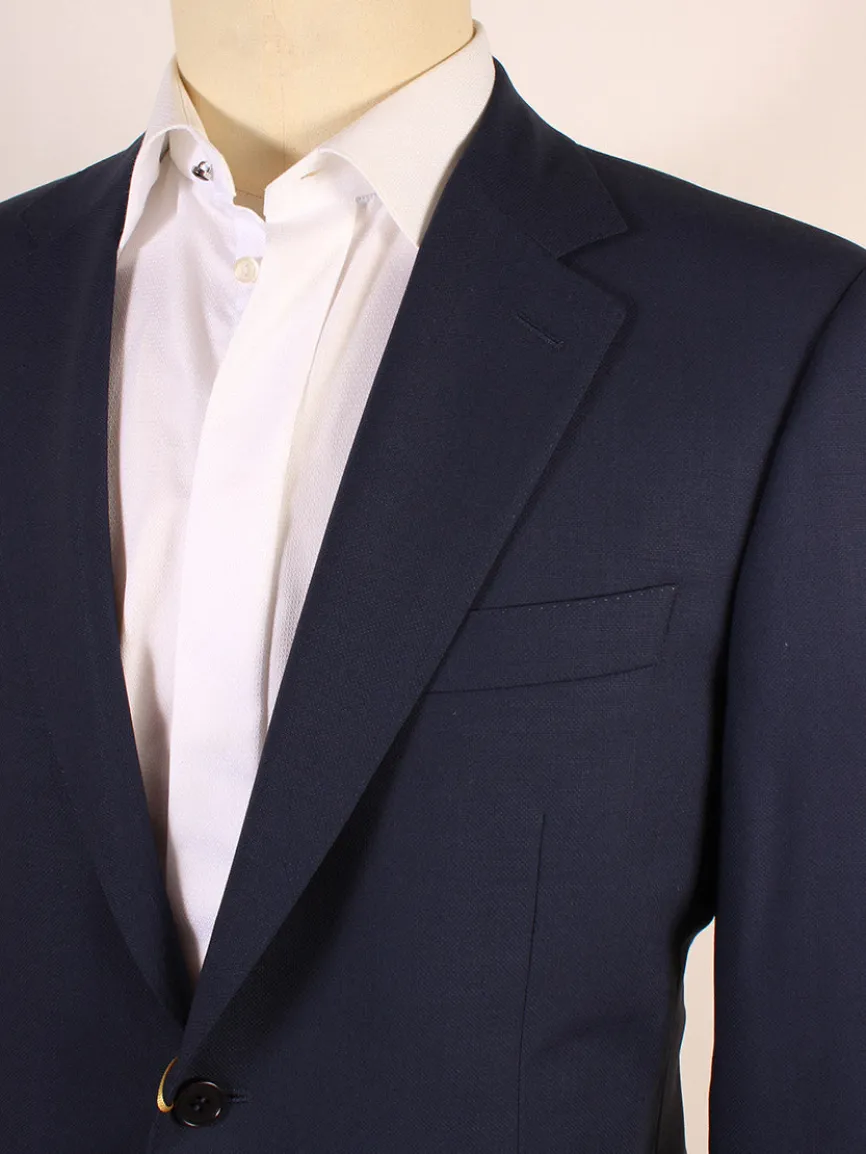 Siena wool 2-button sport jacket with notched lapels in dark blue. Chest welt pocket, lower flap pockets. Side vents. Fully lined. Made in Italy.