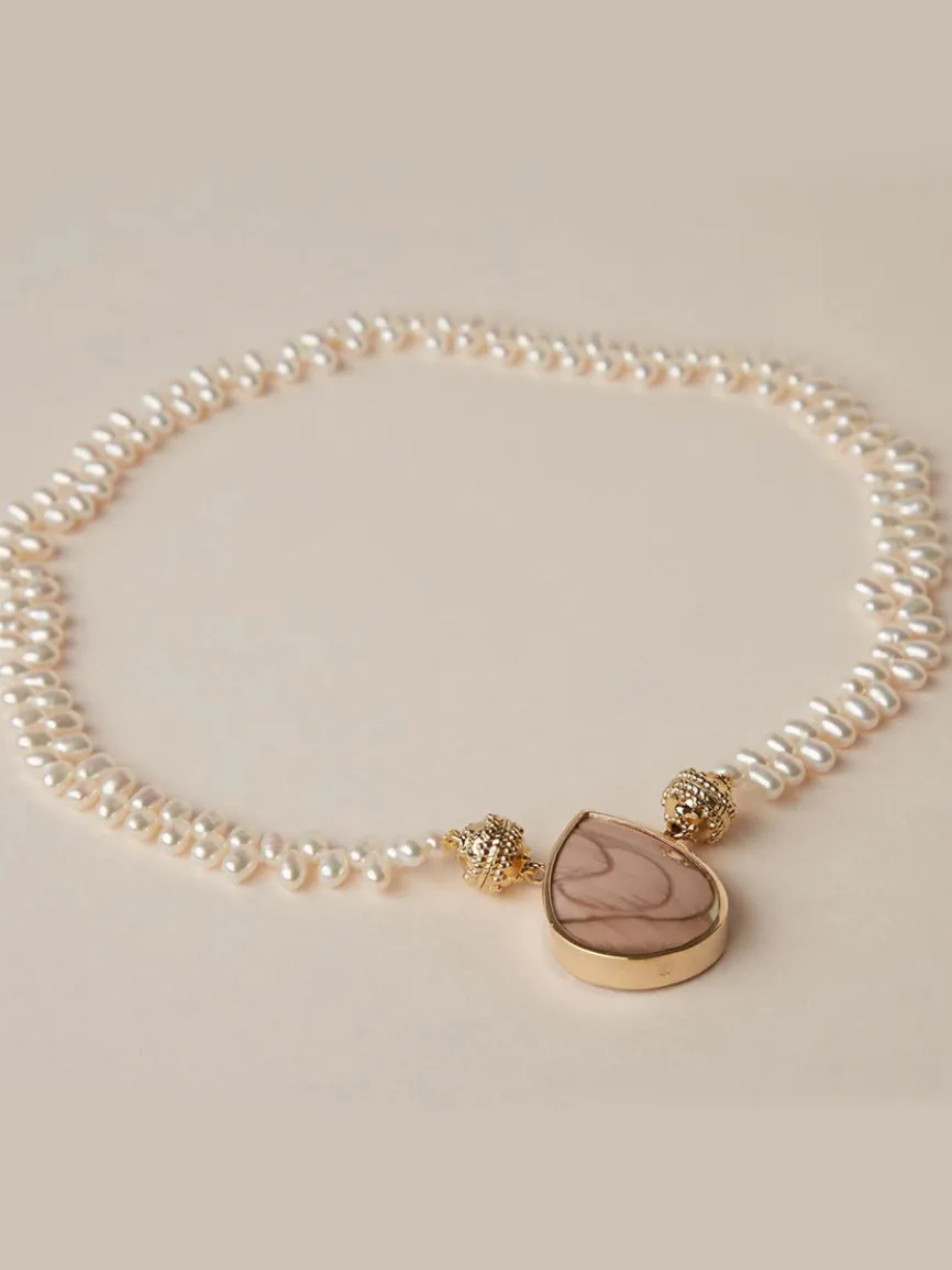 White Freshwater Drop Pearls. Hand-strung. Plated 14K yellow gold Mini ClaraClasp®. 16.5″ length.
