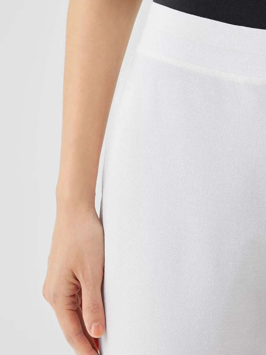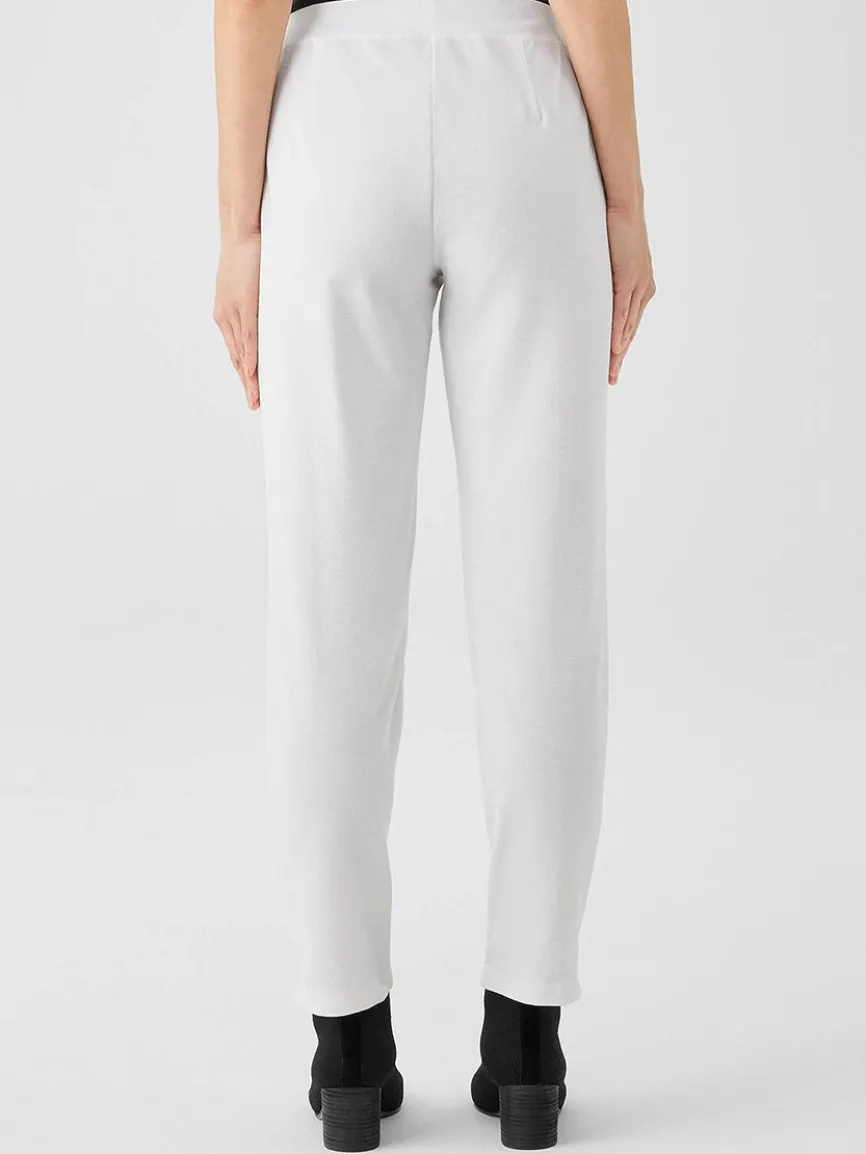 Eileen Fisher’s iconic “696” pant, with clean lines and a high rise. The answer to all your what-to-wear questions, in their washable, packable stretch crepe. Fits close to the body. Eileen Fisher’s slim fit is easier than the industry standard—with stretch for maximum comfort. Made in USA. 2-inch waistband, 3 1/2-inch back darts for shape. Small: 10-inch rise; 28 1/2-inch inseam; 6 1/2-inch leg opening.
