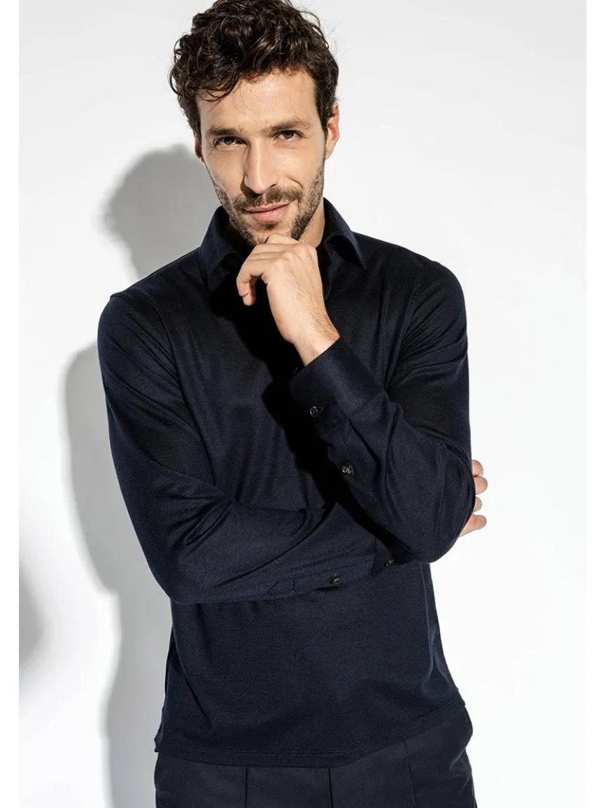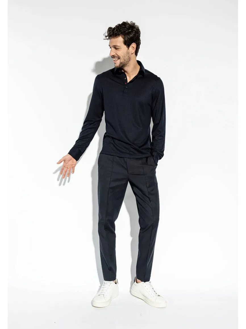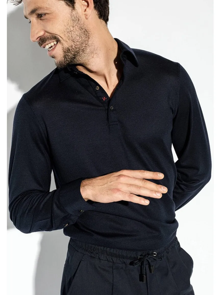 Long sleeve Evening Polo by Isaia. 3-button collar, single button mitered cuffs, hi-low hem with side vents. Made in Italy.