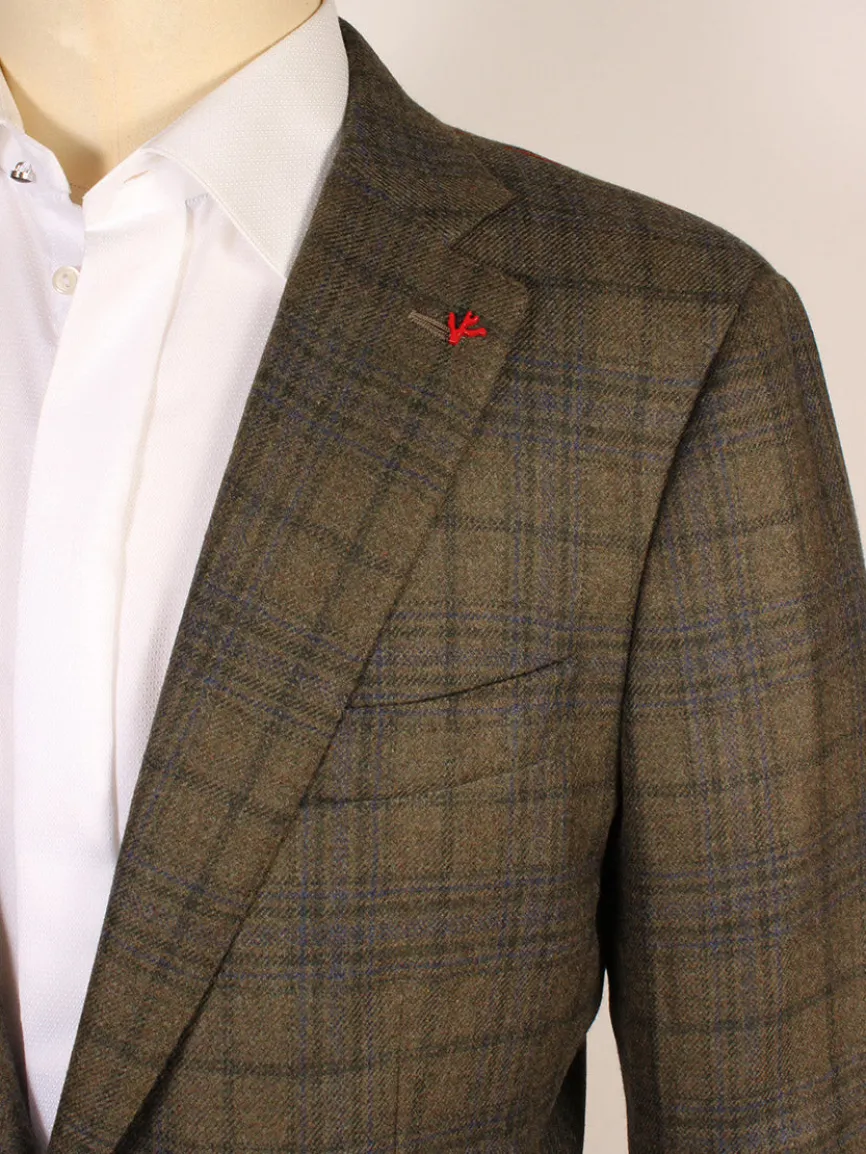 Patch Pocket Sanita Sport Jacket by Isaia. Notched lapels, side vents. 2 front patch pockets. Partially lined. Made in Italy.