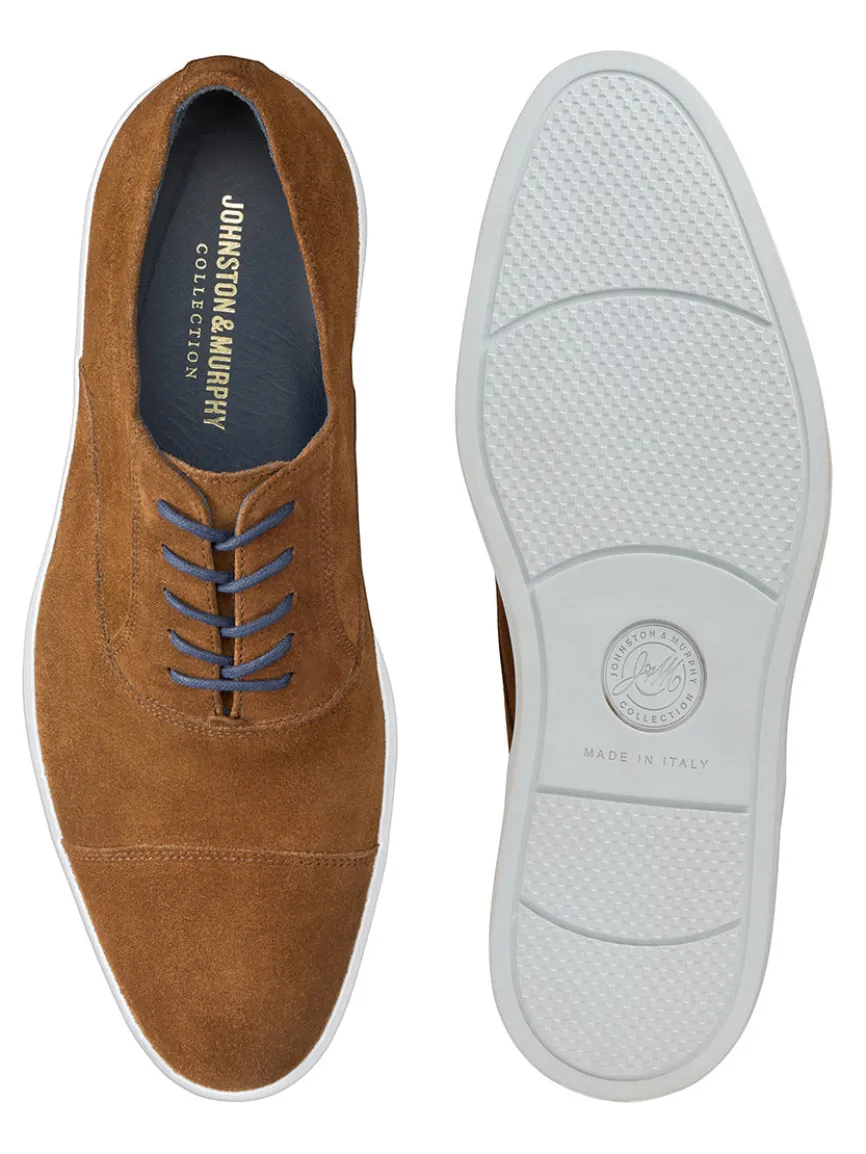 Crafted in Italy for Johnston & Murphy Collection. Italian suede uppers. Full leather lining. Molded, removable polyurethane footbed with enhanced cushioning. Rubber outsole.