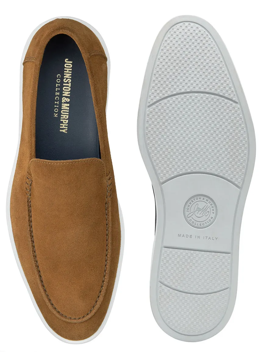Crafted for Johnston & Murphy Collection. Italian suede upper. Full leather lining. Molded, removable polyurethane footbed with enhanced cushioning. Rubber outsole.