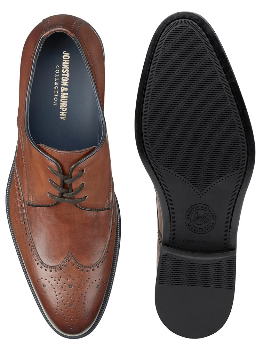 Crafted in Italy for Johnston & Murphy Collection. Italian calfskin uppers. Full leather linings. Molded, removable polyurethane footbed with enhanced cushioning. Rubber outsole.