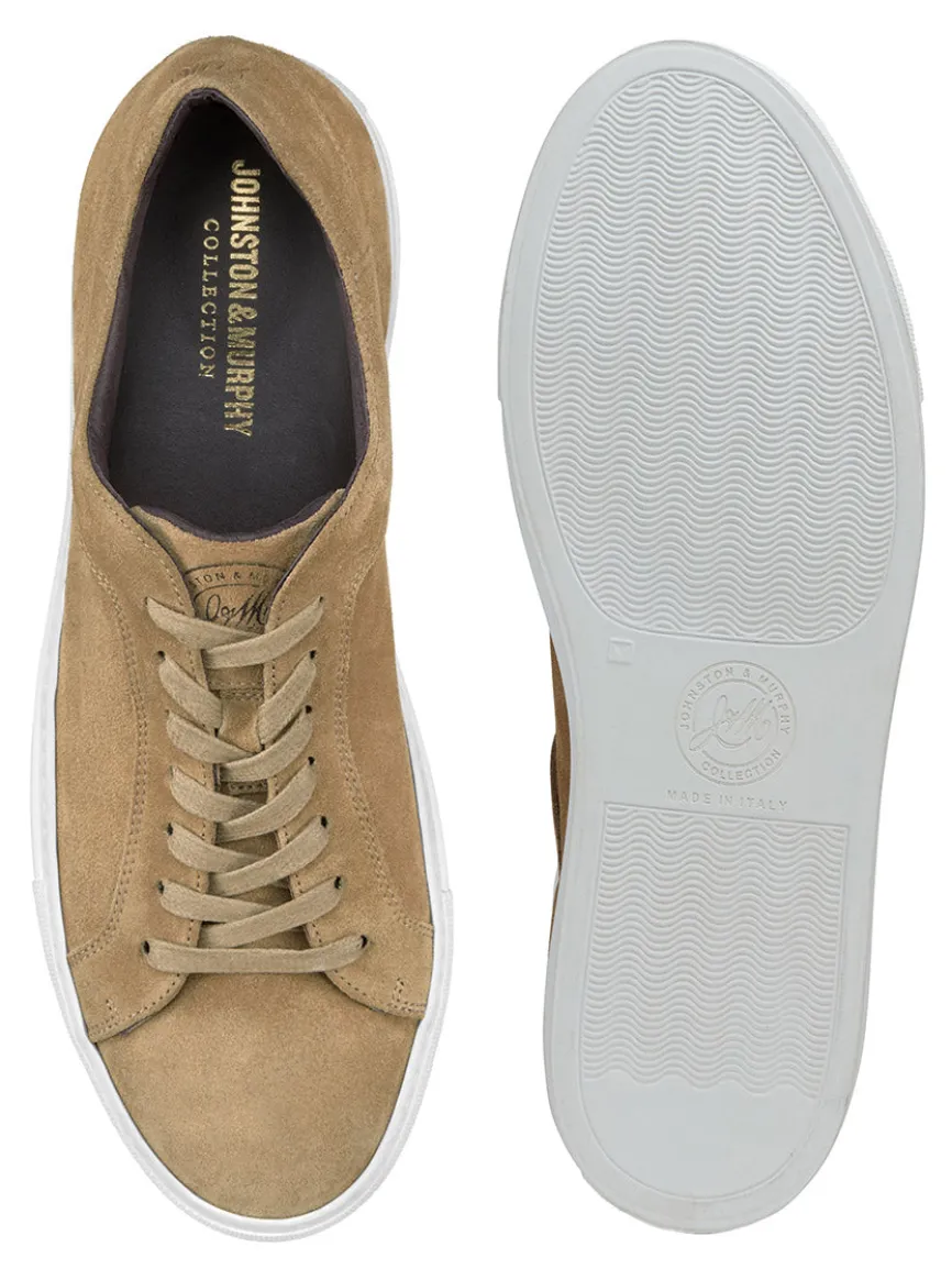 Crafted in Italy for Johnston & Murphy Collection. Italian suede uppers. Full leather lining. Cushioned, removable footbed. Rubber outsole.