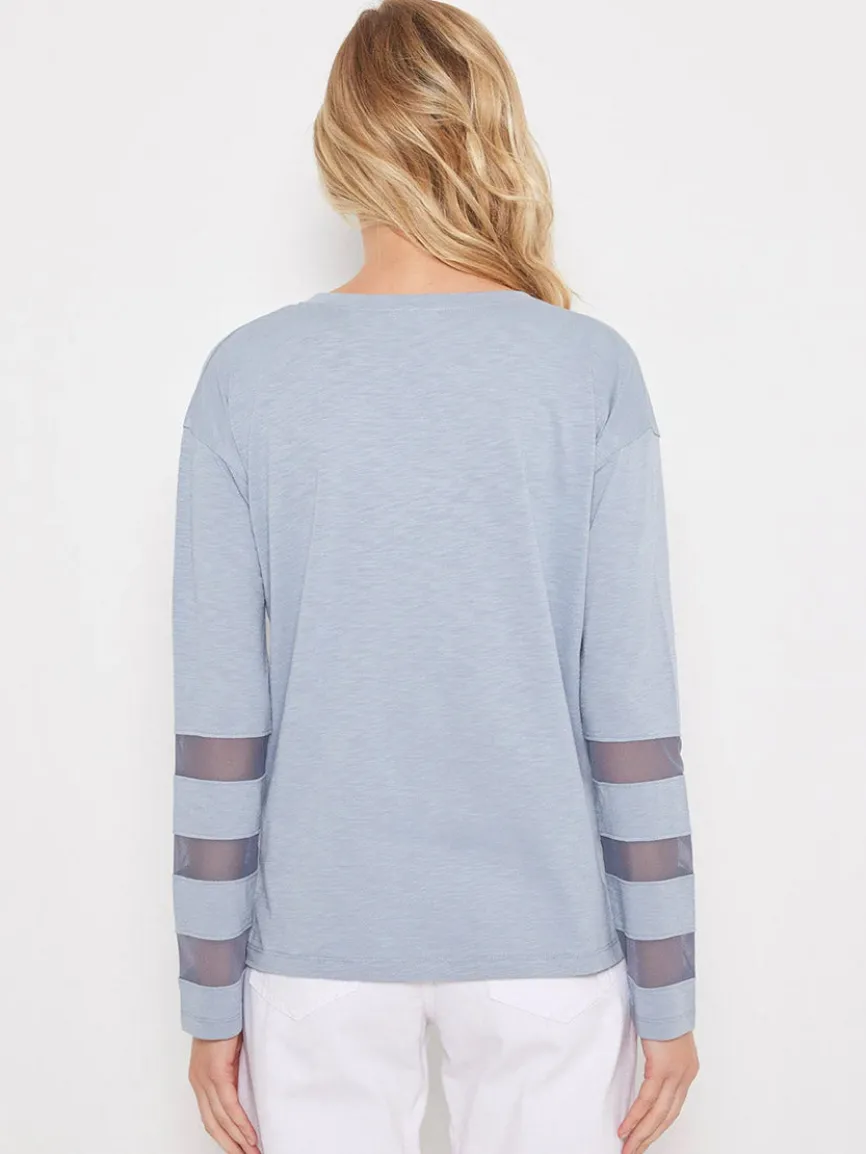 The Mesh Fest returns in a Cotton V-neck. The tonal sheer mesh inserts on the sleeves elevate your everyday tee and luxe up your look. Relaxed fit.