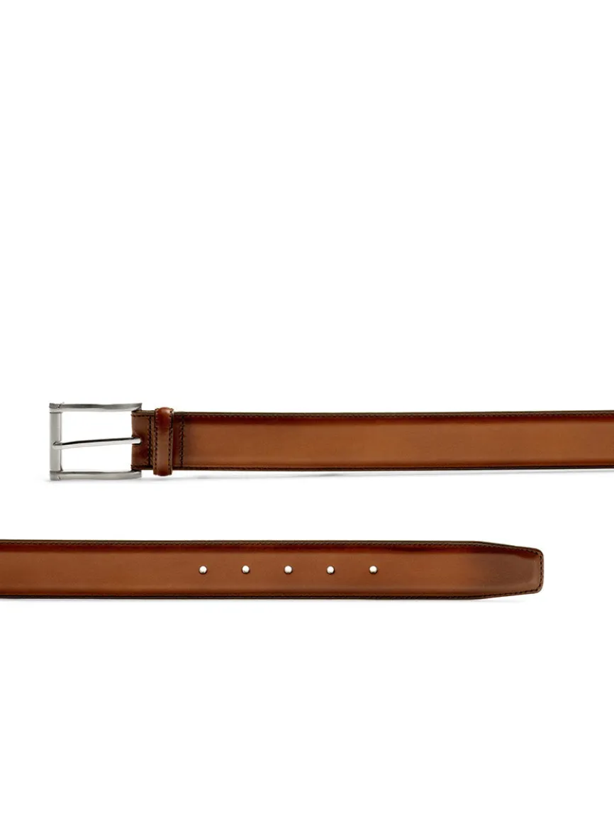 The Carbon belt is handcrafted from Magnanni’s supple calfskin leather. The buckle features a curving frame with a rounded bar accent. 35mm. Made in Spain.