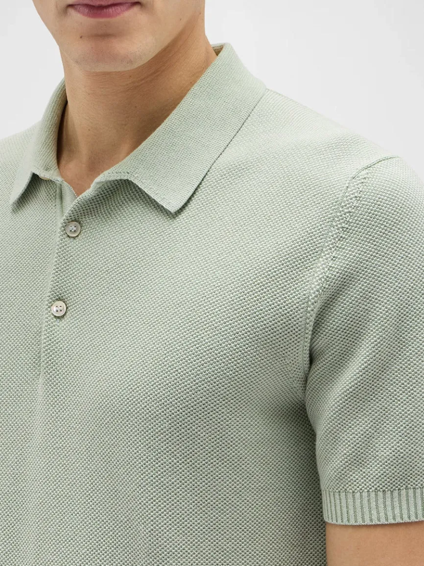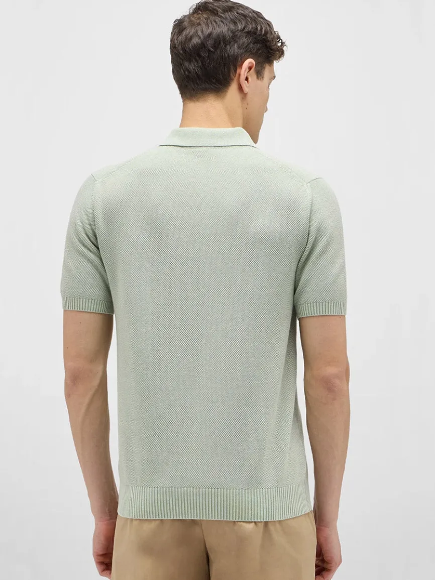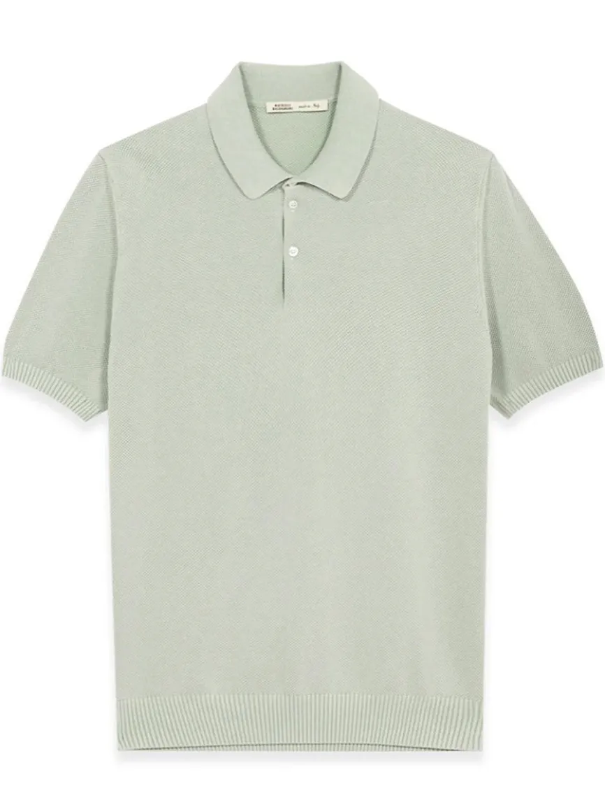 Garment-dyed polo shirt in honeycomb stitch cotton. Closed with 3 real mother-of-pearl buttons. Relaxed fit garment. Made in Italy.