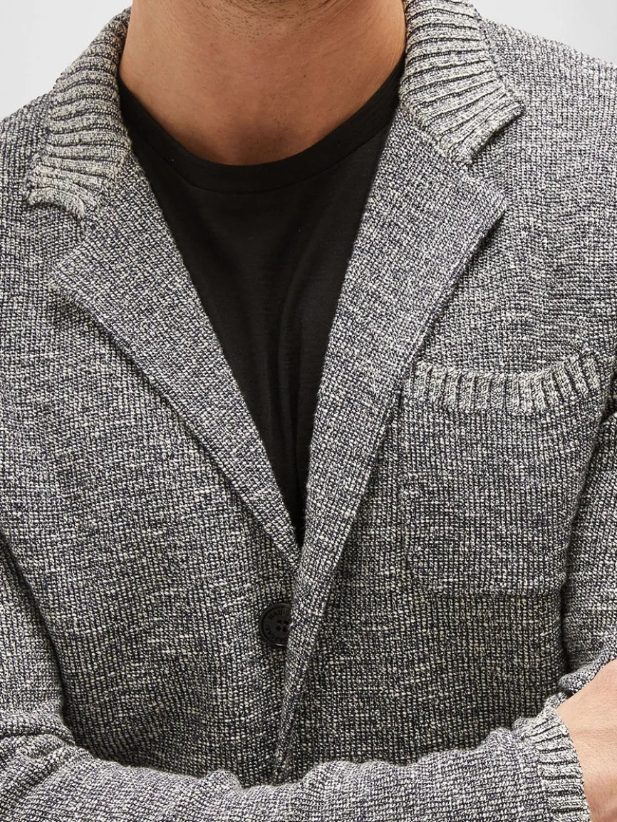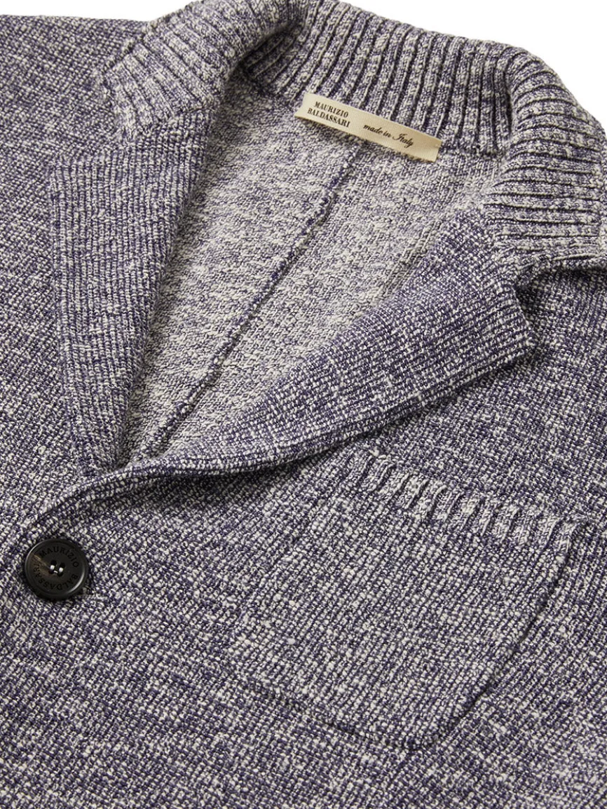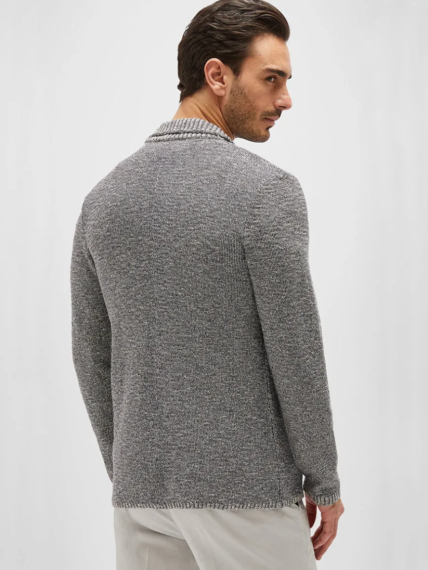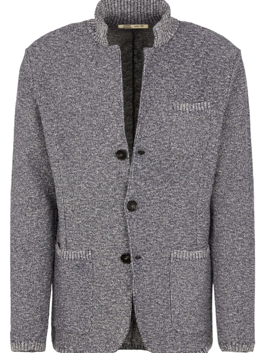 Swacket knitted jacket with three patch pockets and three front buttons. Composed of a blend of high quality moulinè cotton that creates a refined and comfortable luxury. Perfect for an informal but elegant look. Made in Italy.