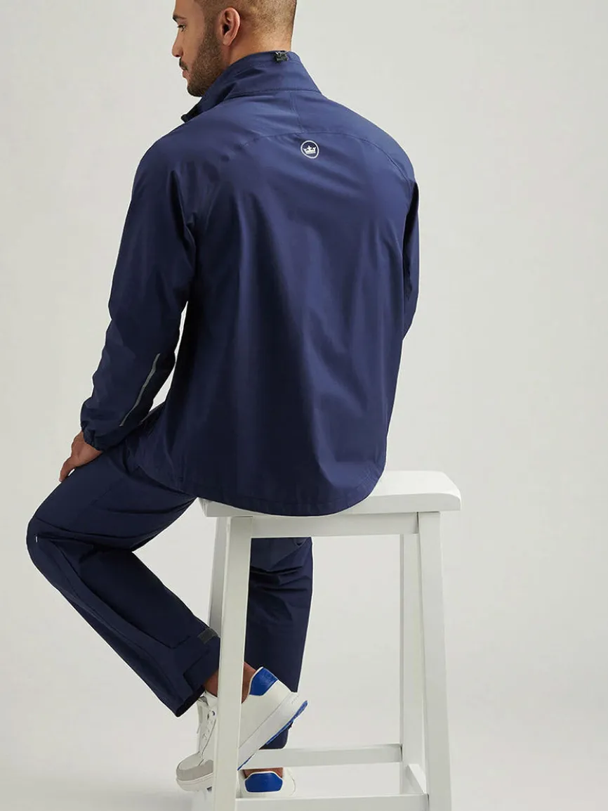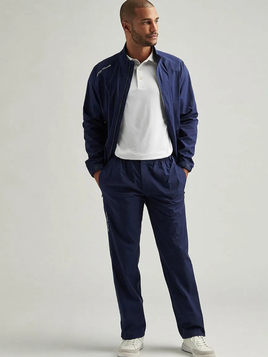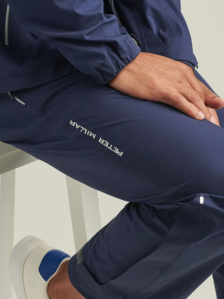 New for the season, Peter Millar’s Rain Walker Pant showcases a soft and quiet high-performance fabric that’s windproof, waterproof and exceptionally breathable. Fully taped seams maximize protection, two-way stretch allows for optimal mobility, and a more relaxed fit allows for comfortable layering. When conditions are at their most challenging on the course, this will be your go-to golf pant. Classic Fit – Intended to be worn as a second layer. Long Inseam: 33″, Rise: 11.5″. Zipper, velcro closure at lower leg.