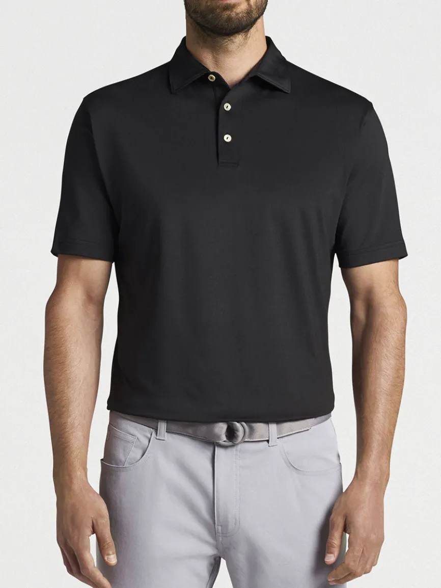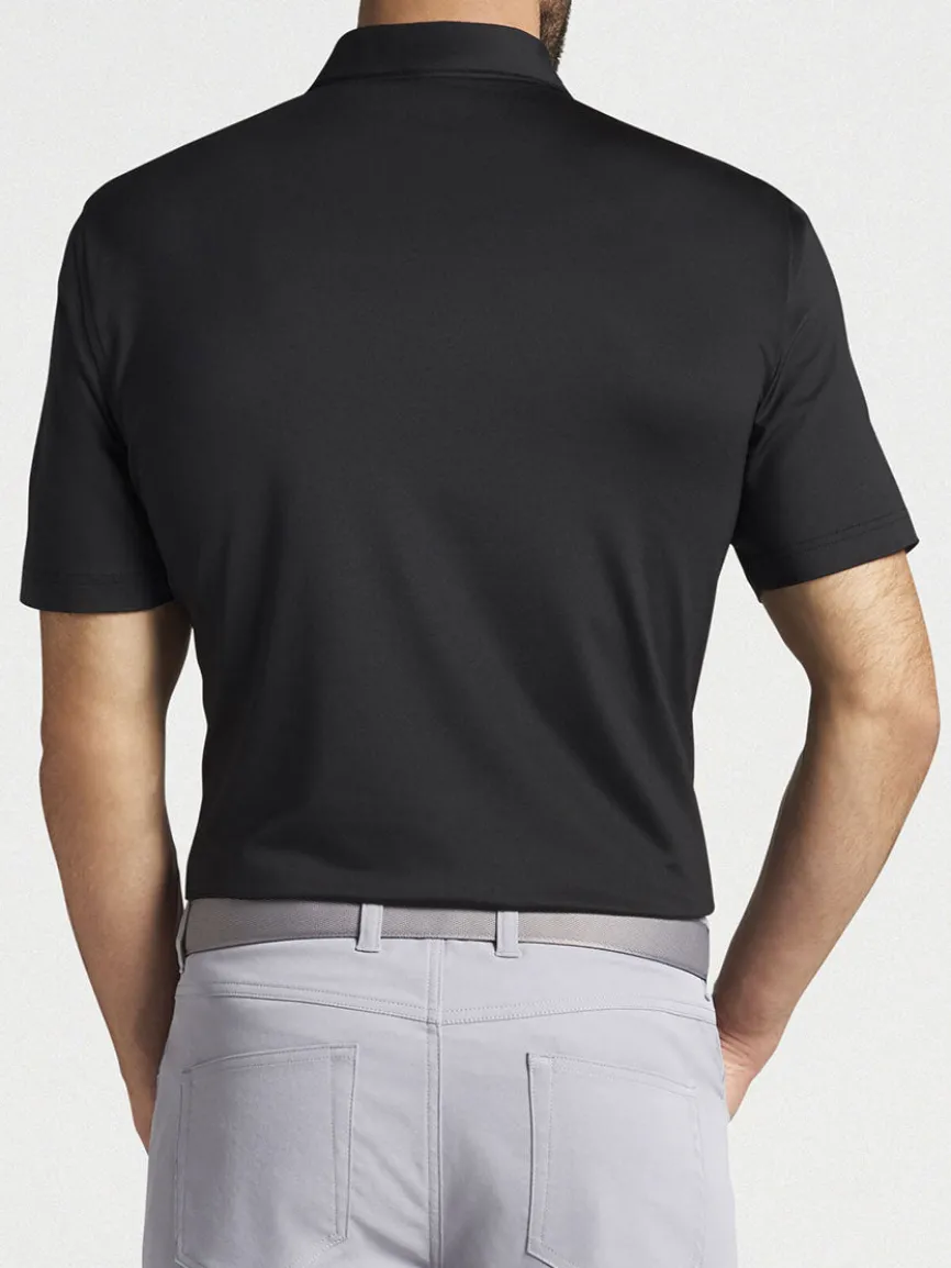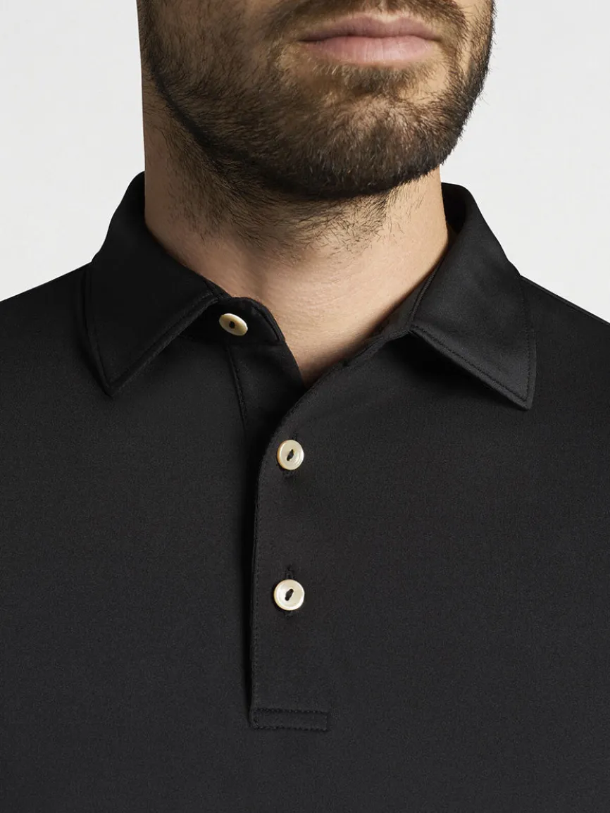 Peter Millar’s polo is crafted to deliver enduring comfort in a sleek style that seamlessly transitions off course. It’s constructed from an antimicrobial performance fabric that features moisture-wicking, four-way stretch and easy-care benefits. UPF 50+ sun protection provides added comfort and coverage. Finished with a Sean self-fabric collar and a two-button placket. Classic Fit.