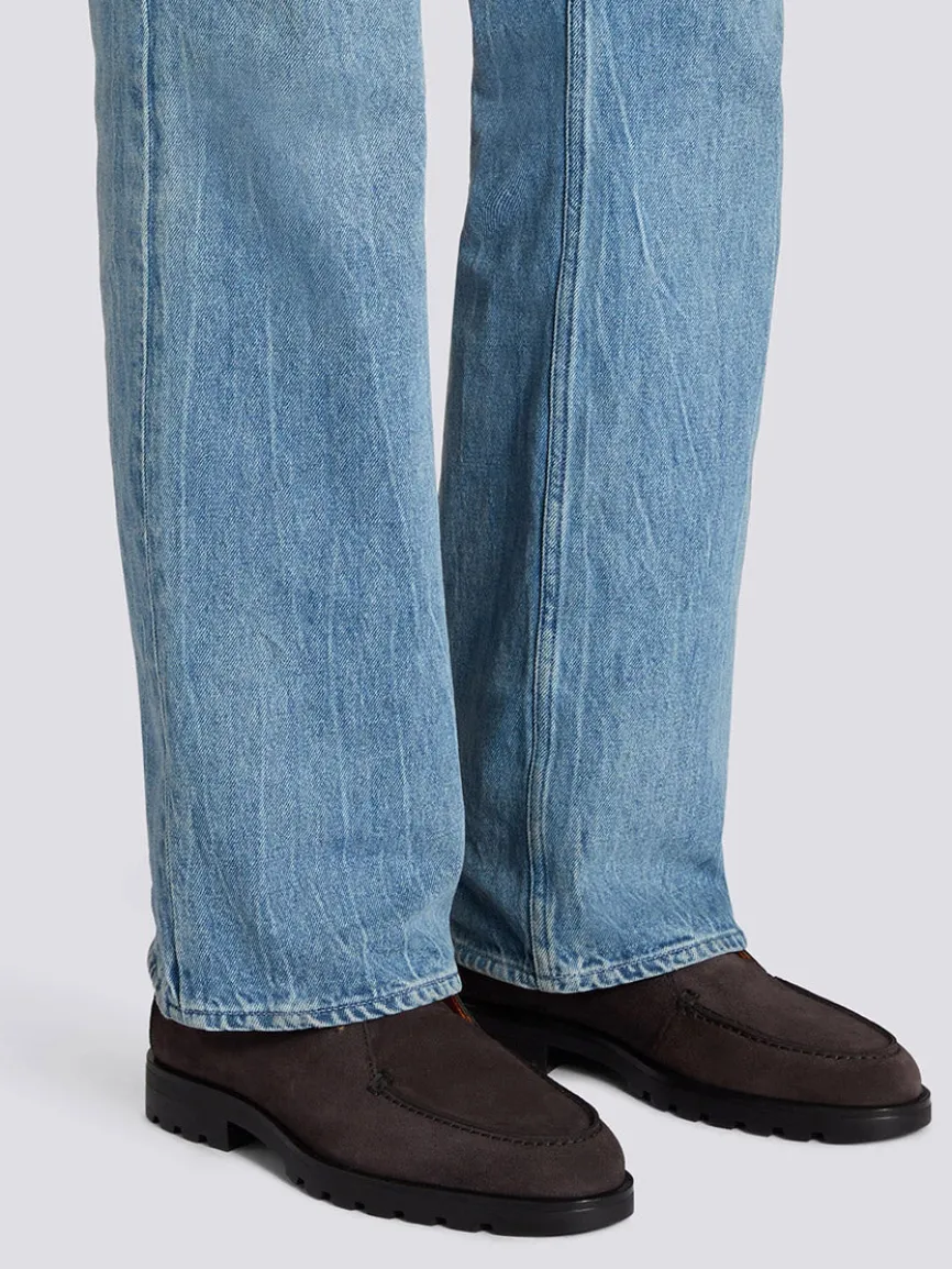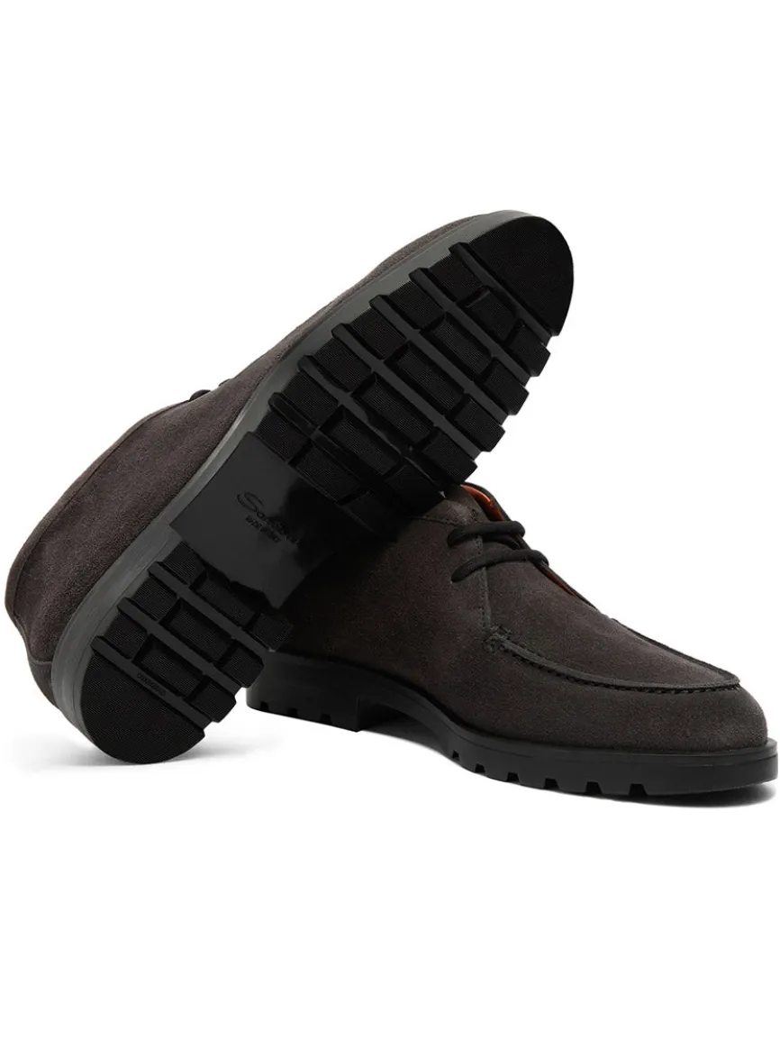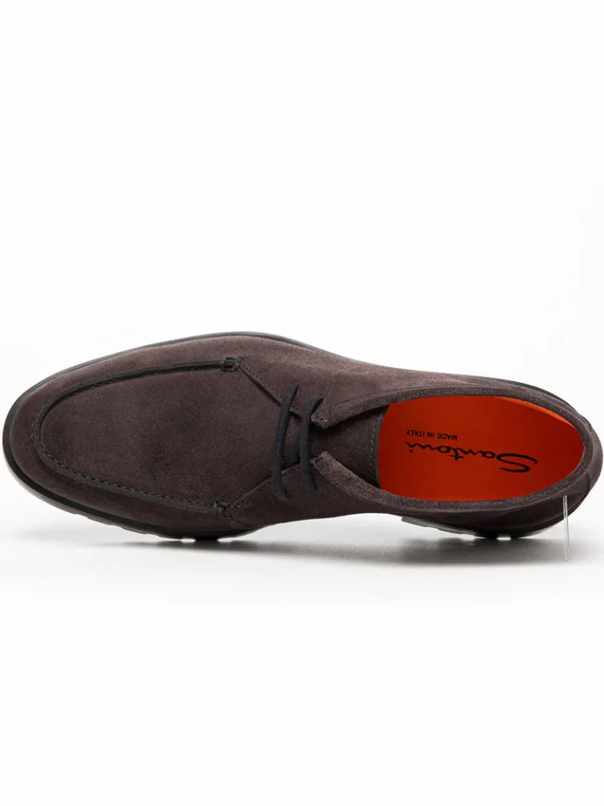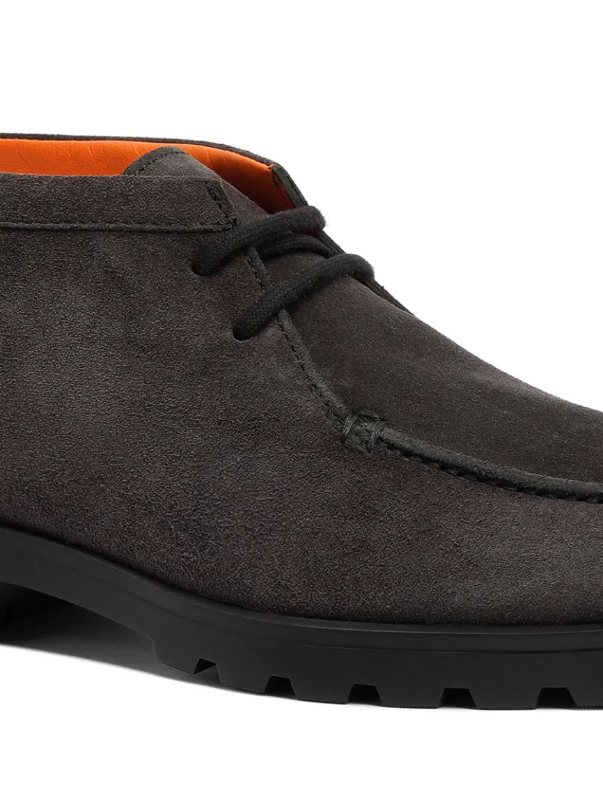 Santoni’s lightweight chukka boots are crafted of soft, burnished suede, offering an unparalleled level of comfort. Leather lining. Rubber sole. Made in Italy.
