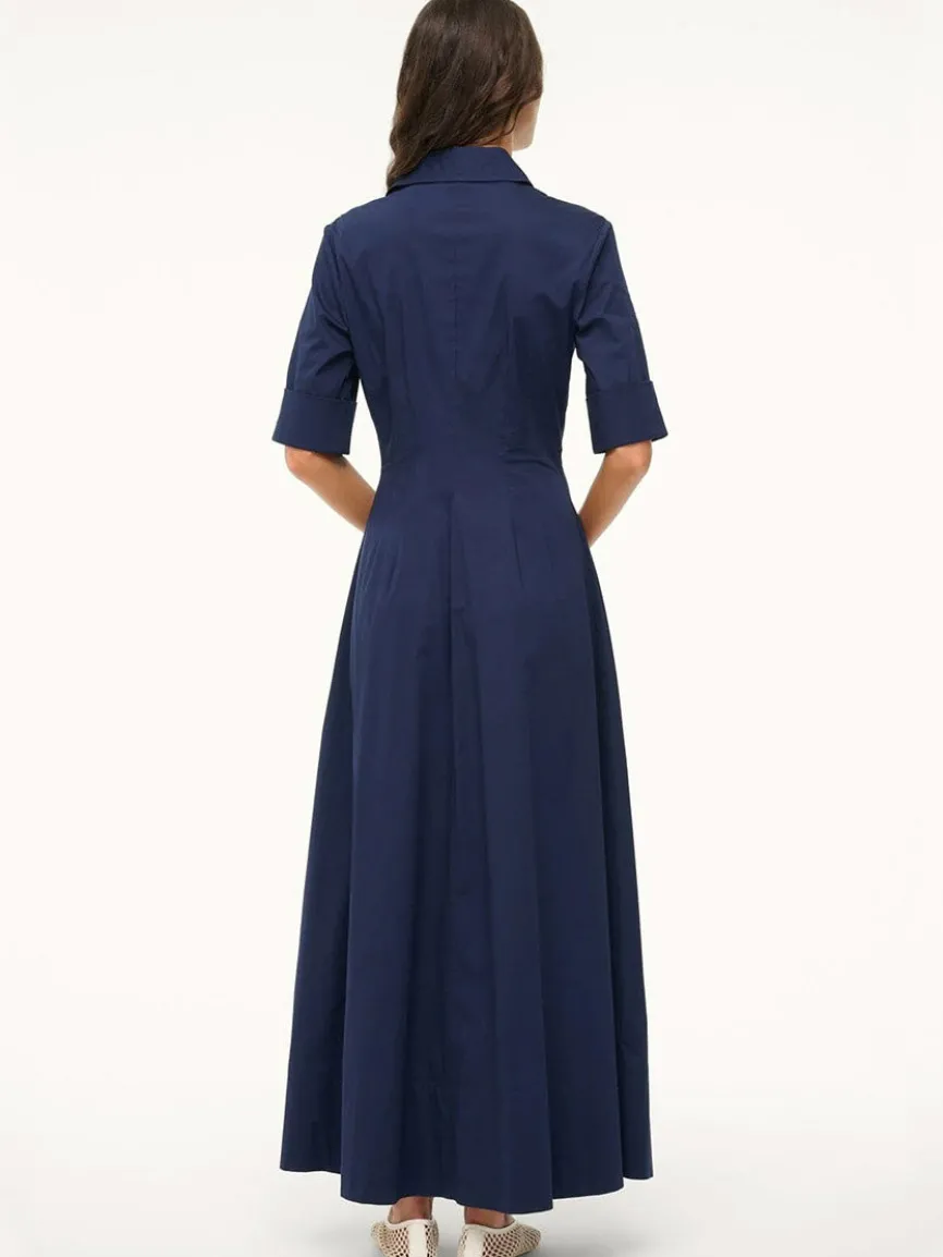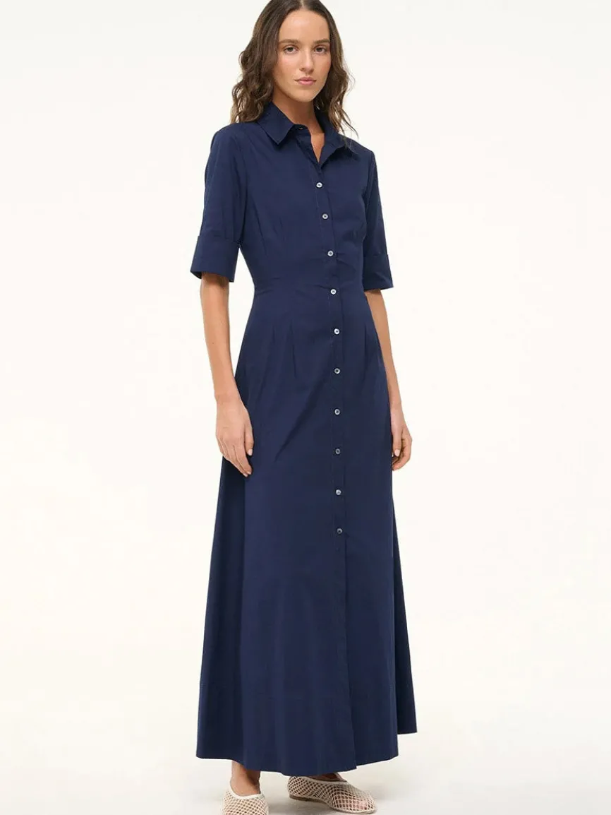 A maxi shirt dress made out of stretchy cotton poplin, the Joan Dress is a modern yet polished take on a classic.