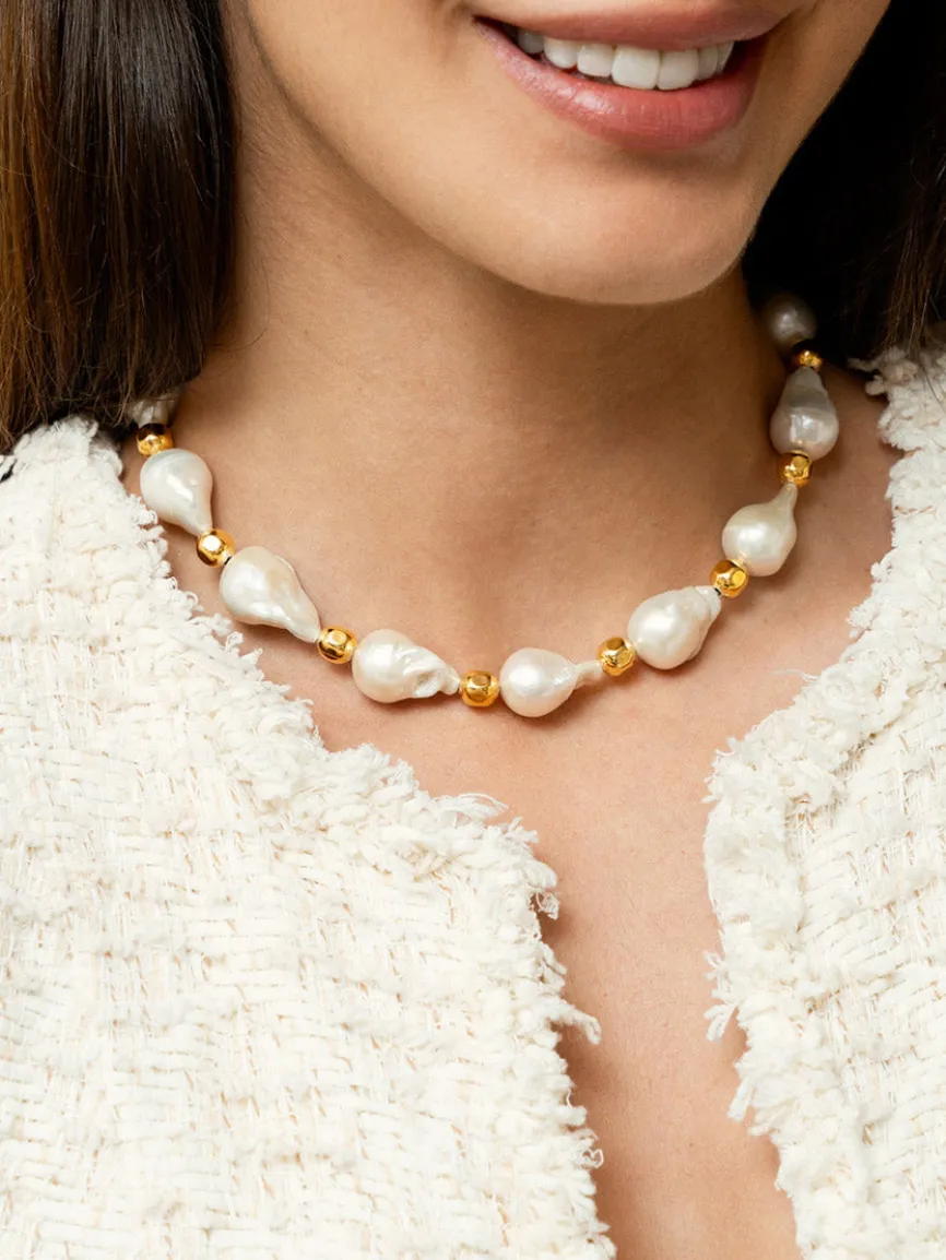 FINAL SALE: Grace Necklace with Baroque Pearls. Brass gilded with fine gold.