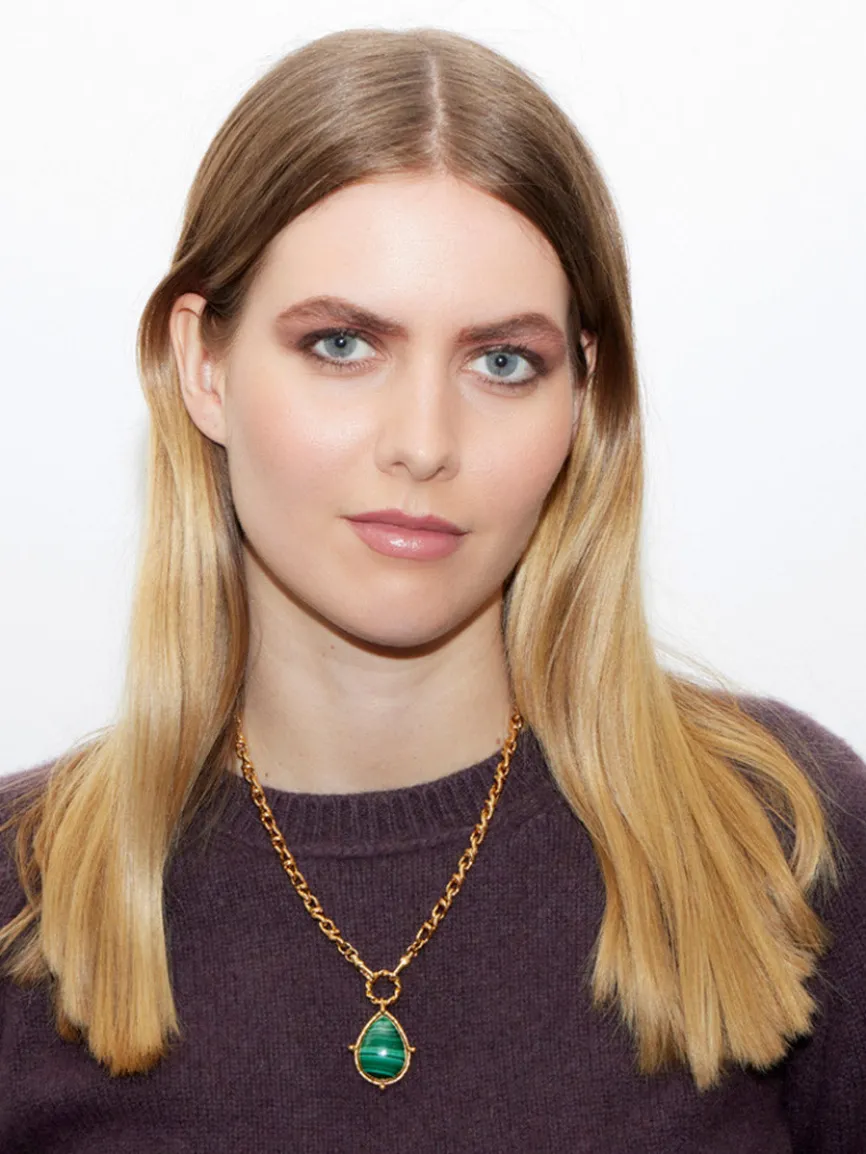Pendant Drop Necklace in Gold with Malachite stone. Brass gilded with fine gold.